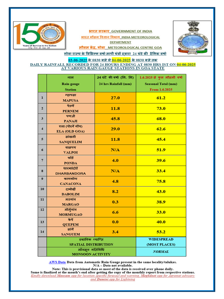 AT VARIOUS RAIN GAUGE STATIONS IN GOA STATE