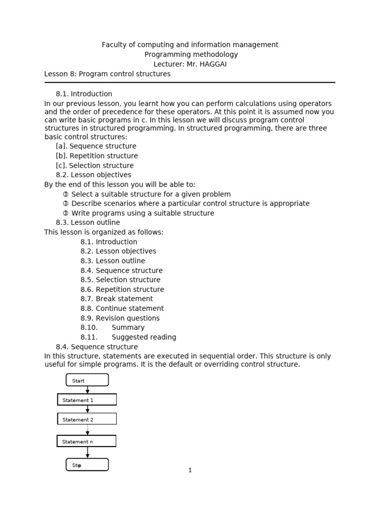 selection and loop control structures. Firstly, we have noted that sequence structure