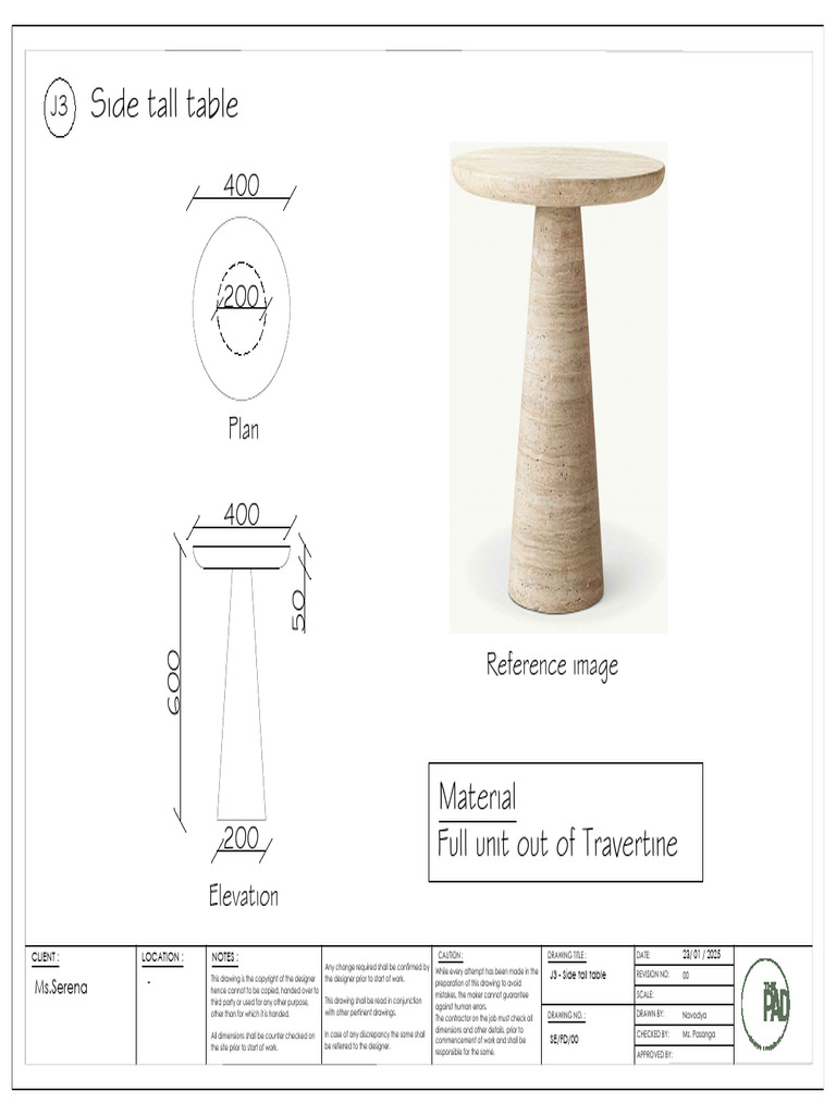 While every attempt has been made in the J3 - Side tall table REVISION NO: 00