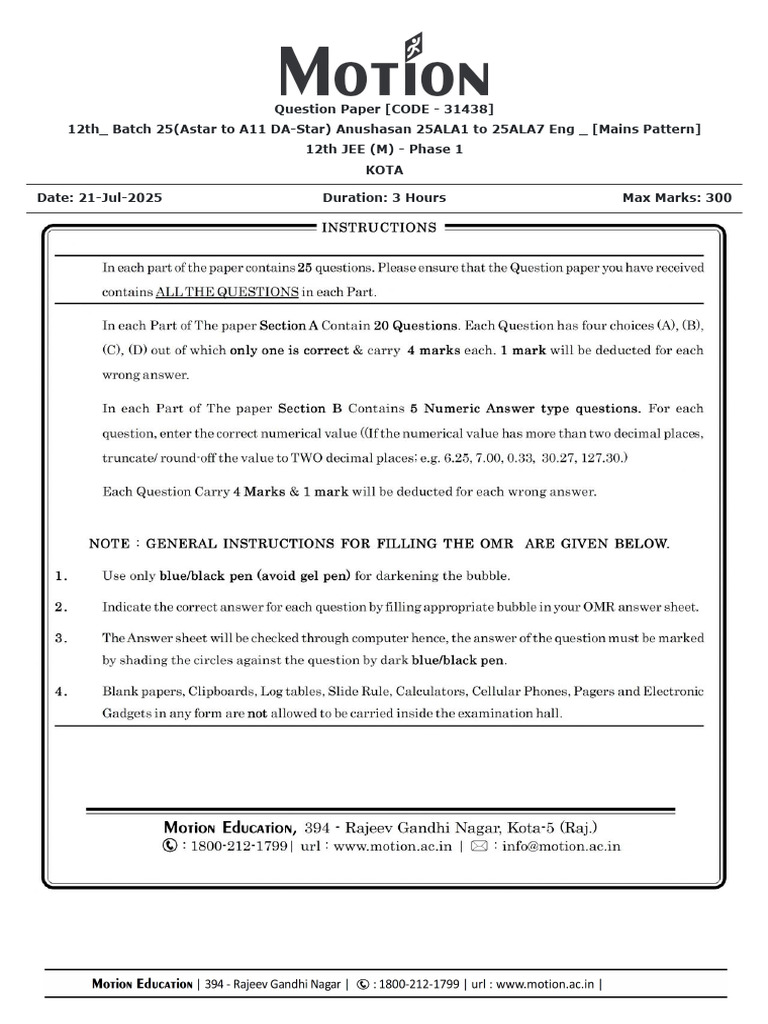 12th JEE (M) - Phase 1