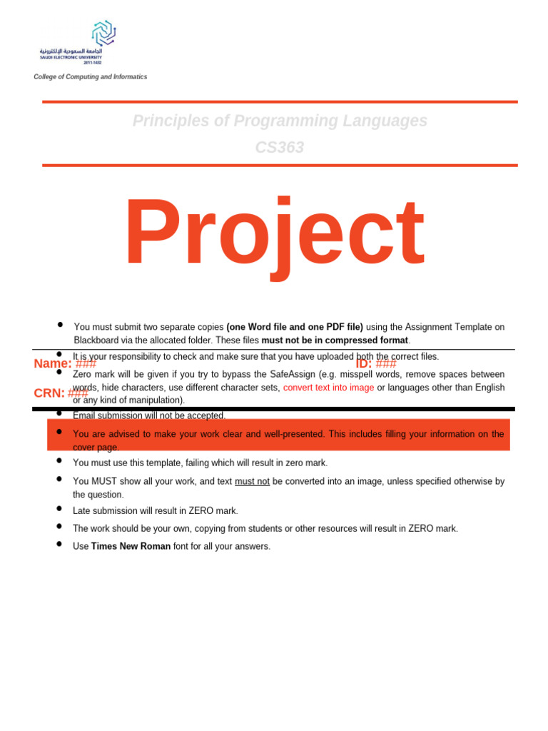 Zero mark will be given if you try to bypass the SafeAssign (e.g. misspell words, remove spaces between