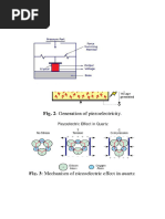 The sound wave is produced by a piezoelectric transducer. Piezoelectric materials exhibit slight changes in physical size when voltage is applied to them. An example of one such material is crystalline quartz. If the piezoelectric material is placed in contact with the acousto-optic material and a high-frequency oscillating voltage is applied to the piezoelectric material, it will expand and contract as the voltage varies. This in turn exerts pressure on the acousto-optic material and will launch an acoustic wave (sound wave) which will travel through the material. The frequency F of the acoustic wave will be the same as the frequency of the applied voltage. The acoustic wave will have a wavelength given by: F = C Equation 3 where C is the velocity of sound in the material, typically of the order of 10 5 cm/sec. Variation of the acoustic frequency of the driver will thus change the acoustic wavelength, which in turn changes the characteristics of the acoustooptic interaction. A typical structure for an acousto-optic device is shown in Figure 5. The piezoelectric materials and metal layers are bonded or deposited on the acousto-optic material. A radio-frequency field is applied across the piezoelectric material using the metal layers as electrodes. The acoustic wave is then launched into the acousto-optic medium by the piezoelectric material. Acoustic waves propagating from a flat piezoelectric transducer into a crystal will form almost plane wavefronts traveling in the crystal. The opposite end of the material from the transducer should have an acoustic termination to suppress reflected acoustic waves.