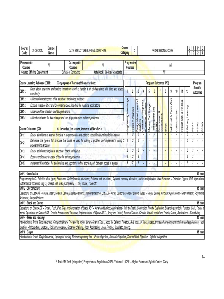 21CSC201J DATA STRUCTURES AND ALGORITHMS C PROFESSIONAL CORE