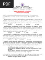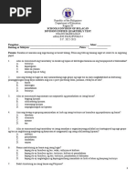 PANUTO: Basahin ng mabuti ang bawat tanong, at piliin ang tamang sagot.