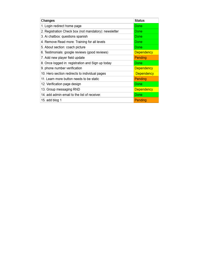 Changes Status
