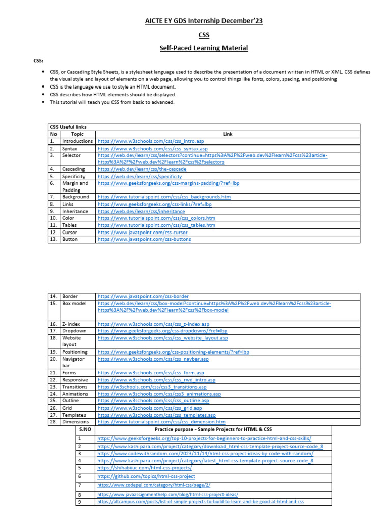 1. Introductions https://www.w3schools.com/css/css_intro.asp