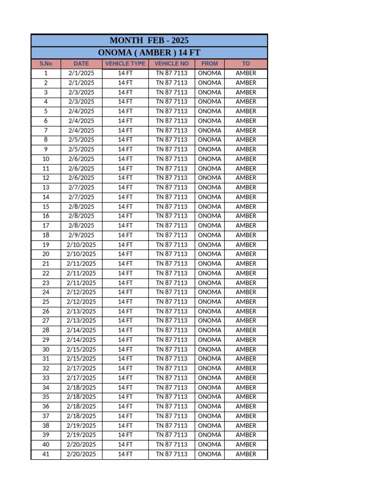 [Link] DATE VEHICLE TYPE VEHICLE NO FROM TO