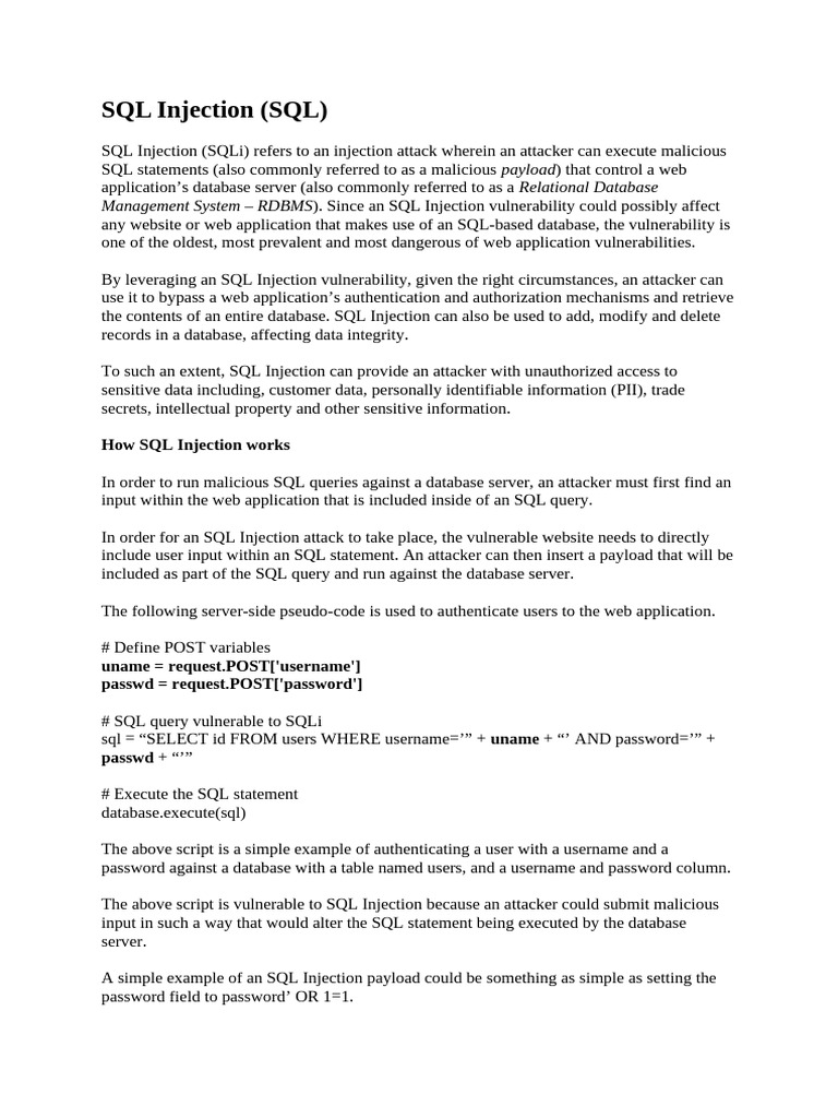 Management System – RDBMS). Since an SQL Injection vulnerability could possibly affect