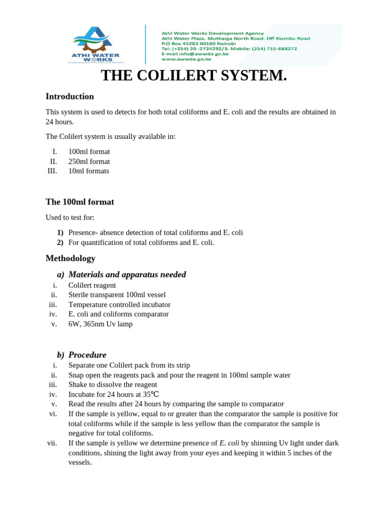 This system is used to detects for both total coliforms and E. coli and the results are obtained in