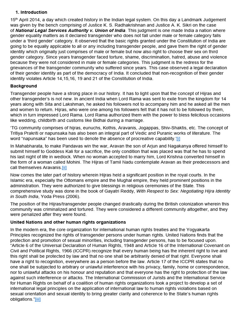 grievances of the transgender community who suffered since years. This case observed a legal declaration