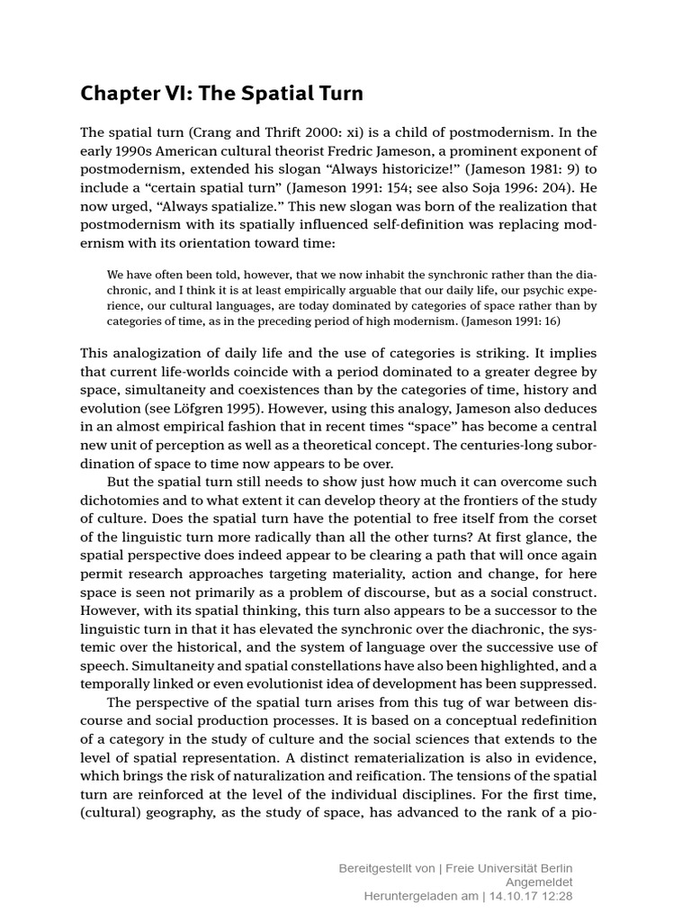 include a “certain spatial turn” (Jameson 1991: 154; see also Soja 1996: 204). He