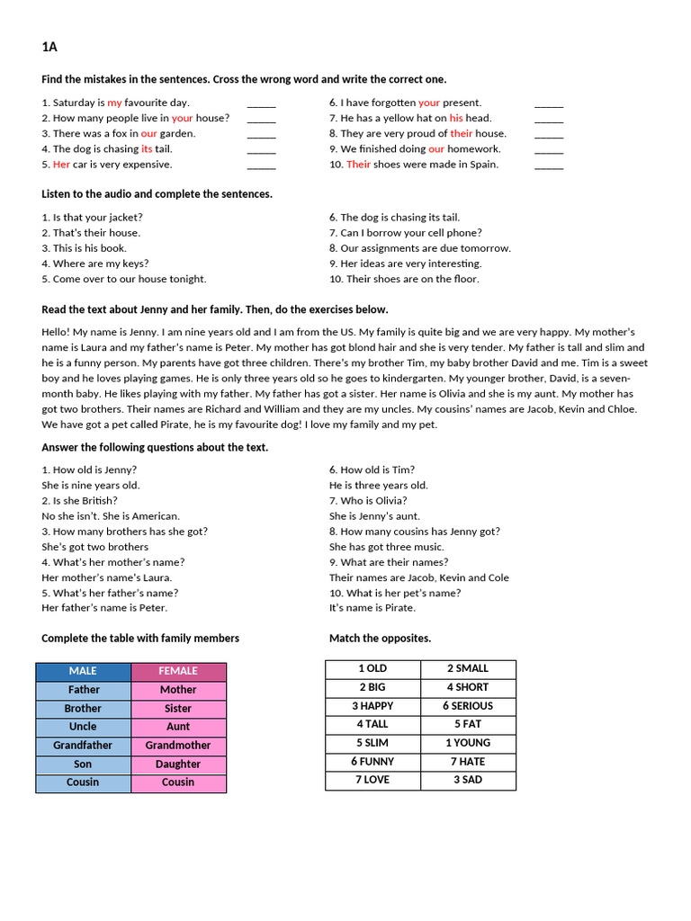 Hello! My name is Jenny. I am nine years old and I am from the US. My family is quite big and we are very happy. My mother’s