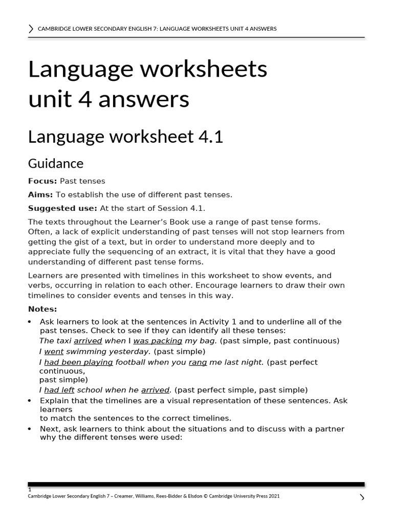 CAMBRIDGE LOWER SECONDARY ENGLISH 7: LANGUAGE WORKSHEETS UNIT 4 ANSWERS