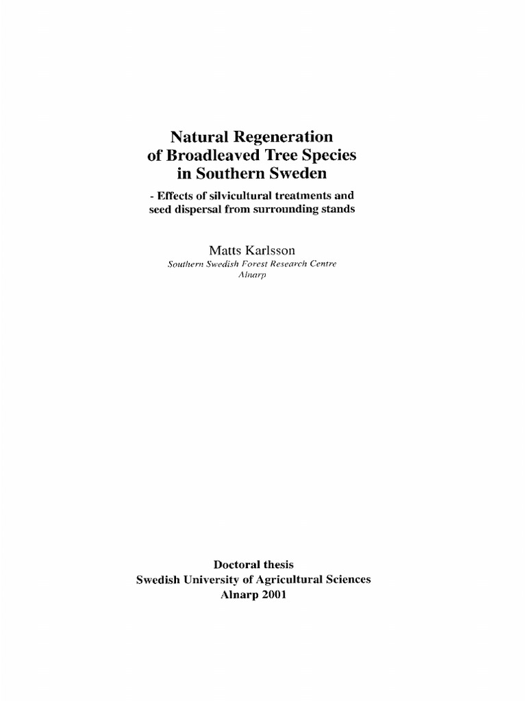 Karlsson, LT. 2000. X f . i m r m . L usgenerulion oJ'hroadleaved lree .species in .soulhern Sweden -
