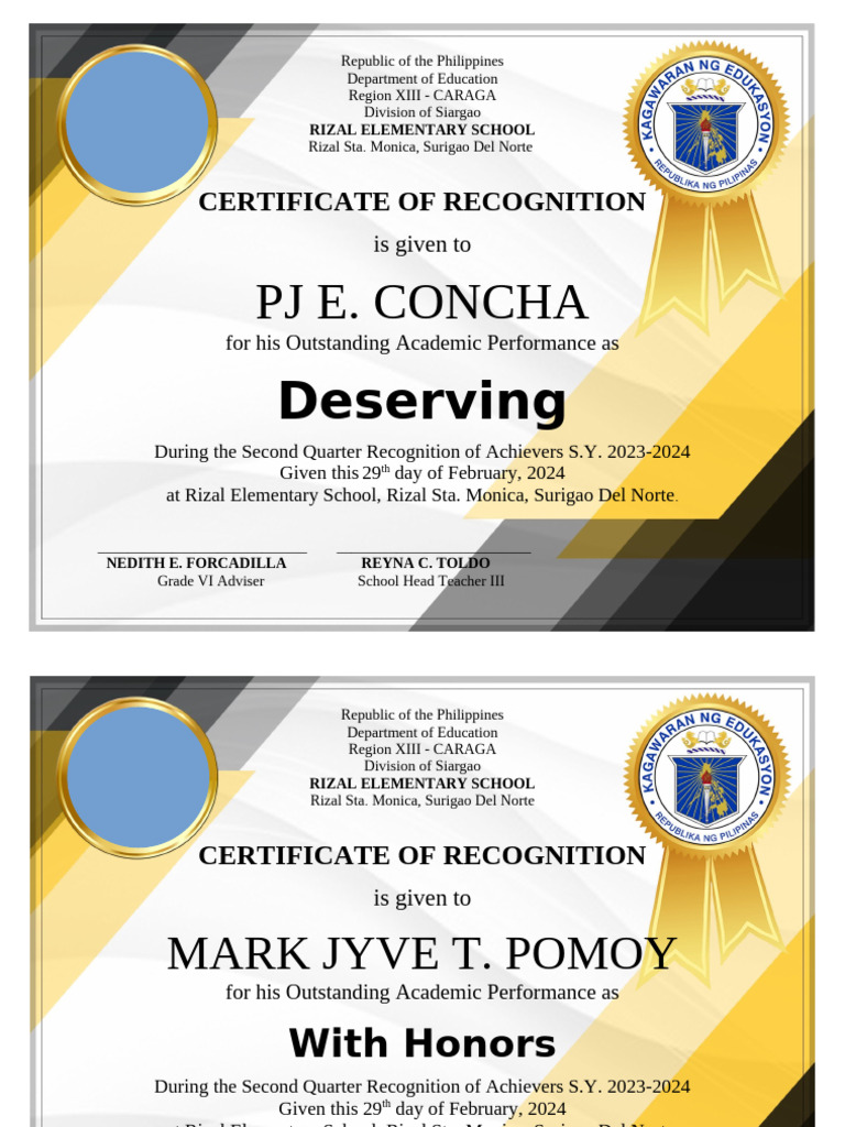 During the Second Quarter Recognition of Achievers S.Y. 2023-2024
