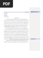 Michael Harvey 2 The first time I ever found a knack for writing was in my freshman year of high school. I entered a essay contest called the Voice of Democracy which was run by the Veterans of Foreign Wars post in my town. One essay would win the national prize, and the writer would receive a $30,000 scholarship. I never believed that I would make it that far but it didnt stop me from sitting at my computer the night before the deadline and the essay seemed to come from within me. The theme for that year was Celebrating our Veterans Service and although I have no copies of the essay readily accessible here or at home, I remember one part that has stuck with me. I said that The young men fighting in World War II didnt have bullet proof armor defending them, it was their hearts and courage that allowed them to survive. This line is all I remember from the essay and I felt it was my strongest and most sincere statement. Within the contest I ended up placing second in district, while the girl who got first place went on to the state competition with a more traditional five paragraph essay. I felt that her essay was this manufactured answer to a question that had no correct response. Now I did think, maybe quite bitterly, that my essay was better at the time, but in that I found she had given them these three pieces of a puzzle that they wanted (she literally talked about a puzzle), while I had given them raw honesty from what I really felt. From this I developed a hatred of the clichd gimmicks that most metaphors are and instead focused on just being honest. I thought that form was more important than the content itself because I didnt win. I started categorizing essays that followed a set form as these factory made ideas that didnt contain anything in term of honesty from the writers heart. From that point on I always did my best to avoid the idea of a five paragraph essay in favor of this more natural flow of thoughts and emotions. Most of high school was spent spitting out the accepted cause and effect paragraphs that I wanted to avoid but I found small chances to be an honest writer through theatre. It wasnt in
