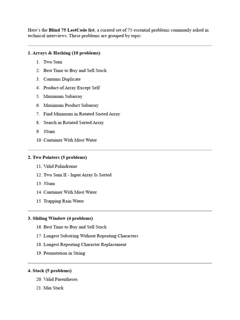 Here’s the Blind 75 LeetCode list, a curated set of 75 essential problems commonly asked in