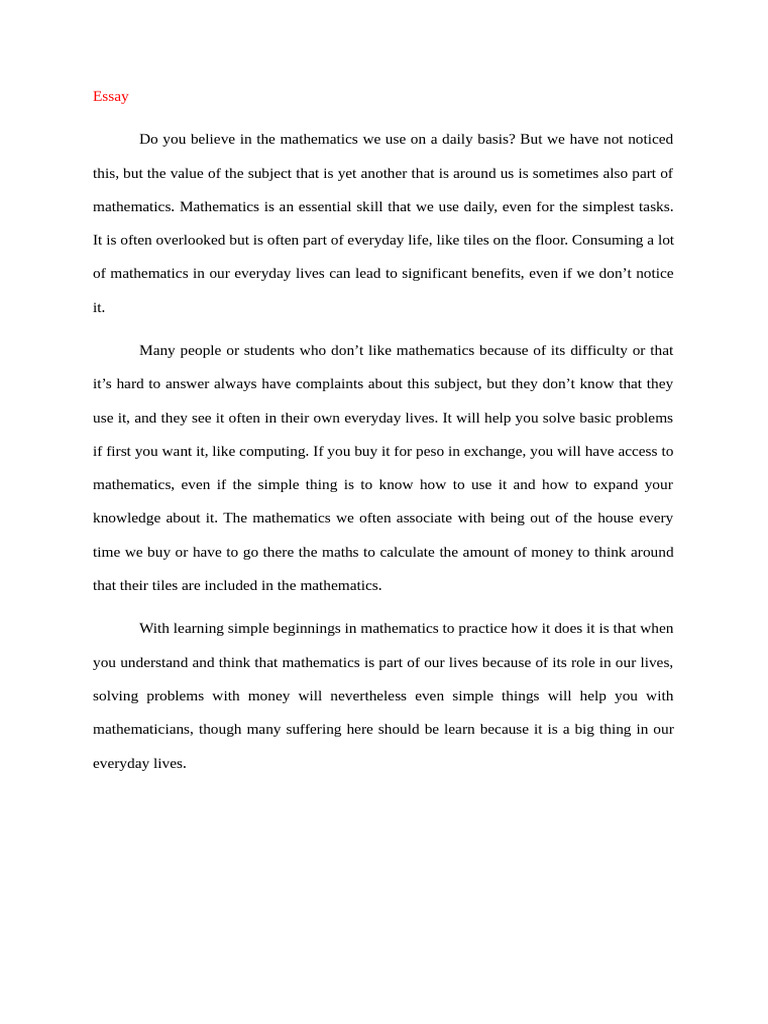 you understand and think that mathematics is part of our lives because of its role in our lives,
