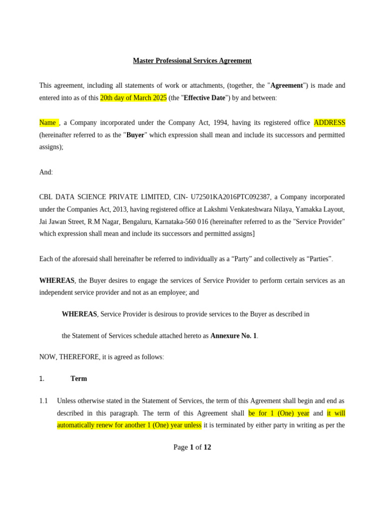 ‘Termination’ clause in this agreement. Beyond the renewal of 1 (One) year, the Agreement shall be