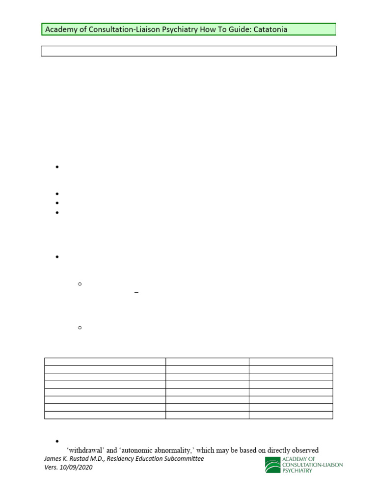 Academy of Consultation-Liaison Psychiatry How To Guide: Catatonia