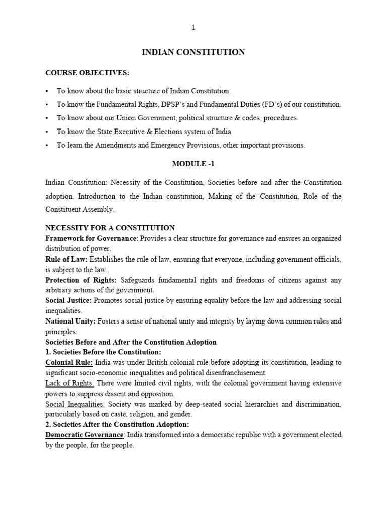 Indian Constitution: Necessity of the Constitution, Societies before and after the Constitution