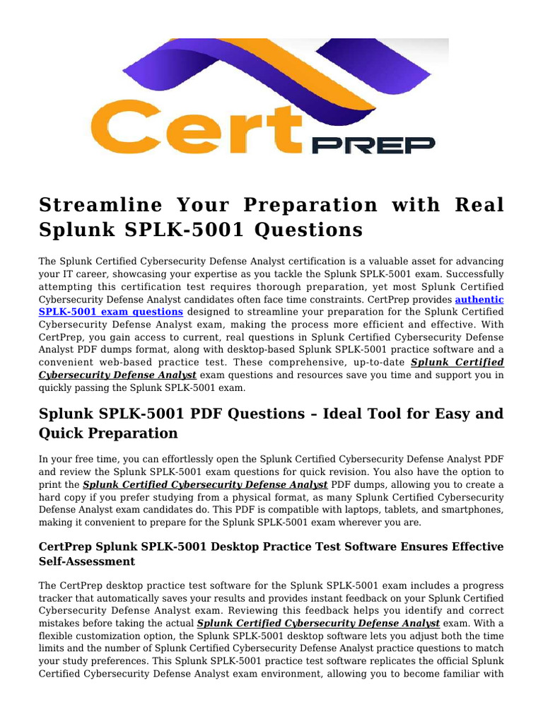 CertPrep, you gain access to current, real questions in Splunk Certified Cybersecurity Defense