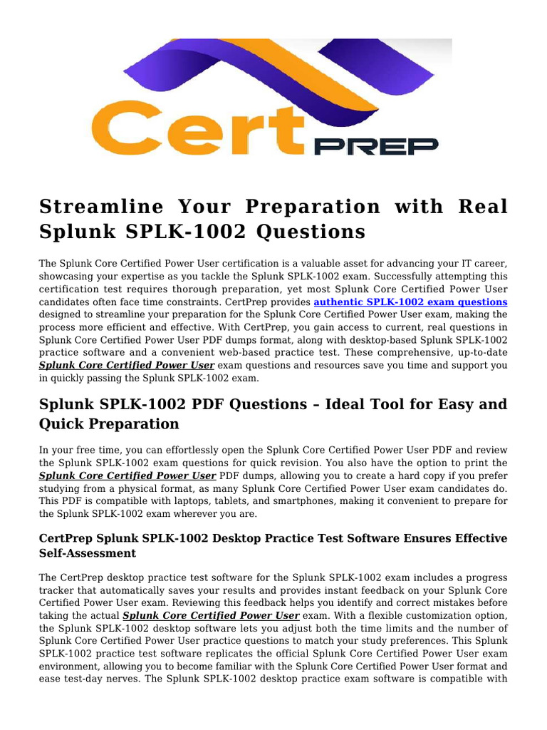 candidates often face time constraints. CertPrep provides authentic SPLK-1002 exam questions
