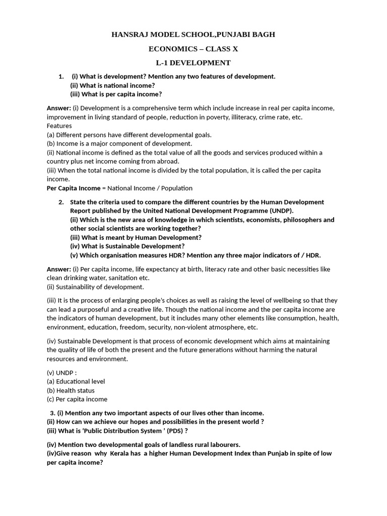Answer: (i) Development is a comprehensive term which include increase in real per capita income,