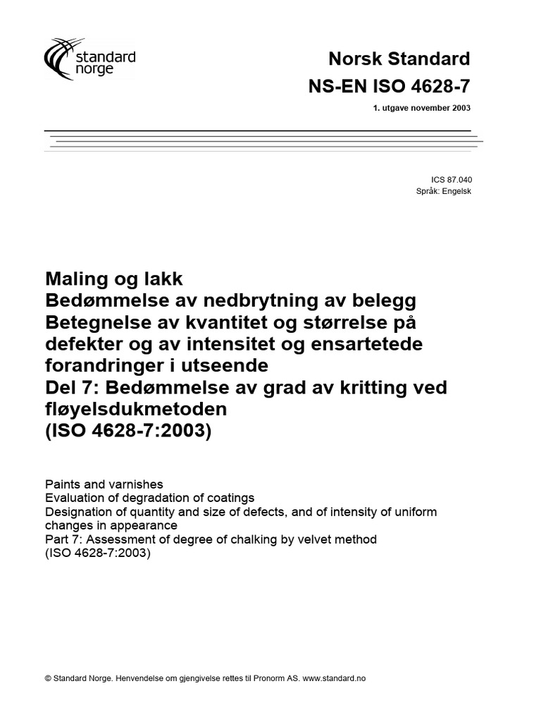 standard EN ISO 4628-7:2003 er fastsatt som Standard EN ISO 4628-7:2003 has been adopted