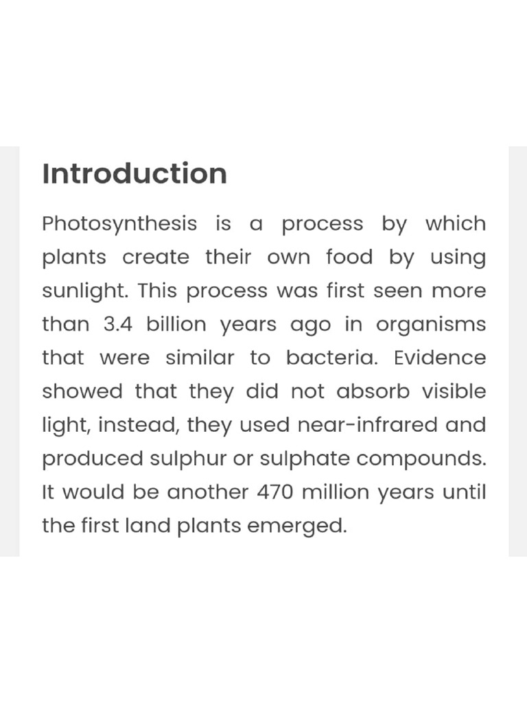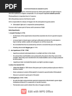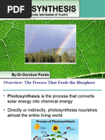Photosynthesis is the process by which plants convert sunlight into food, first observed over 3.4 billion years ago. Key experiments by Joseph Priestley demonstrated that plants produce oxygen, and the process occurs in chloroplasts through mechanisms like cyclic and non-cyclic photophosphorylation. The Calvin Cycle further describes the fixation of carbon dioxide into organic compounds, while factors such as light, carbon dioxide concentration, temperature, and water influence the rate of photosynthesis.