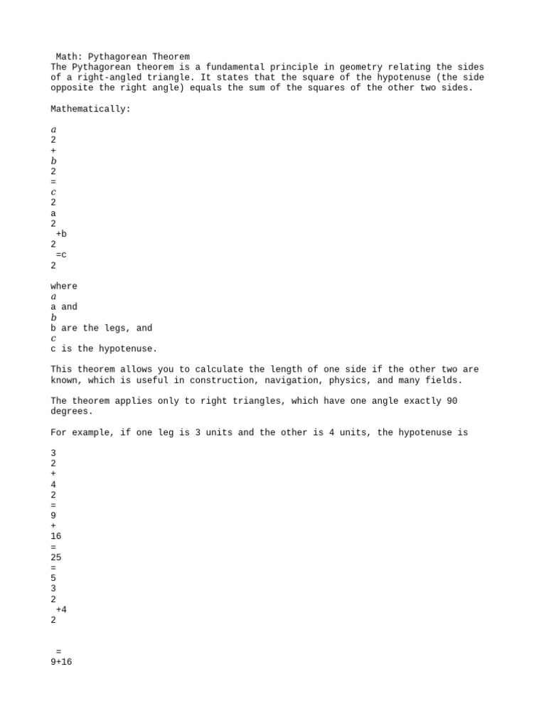The Pythagorean theorem is a fundamental principle in geometry relating the sides
