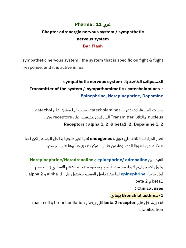 sympathetic nervous system المستقبالت الخاصة بالـ