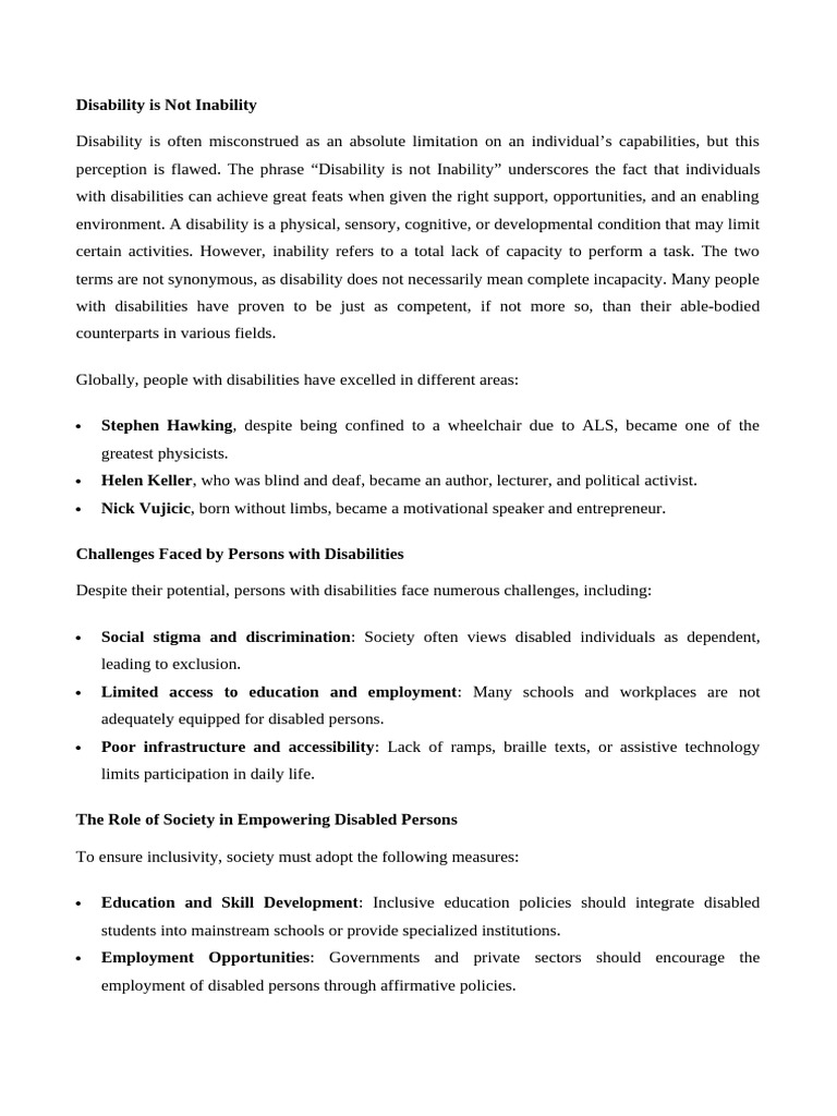 Disability is not inability; it is society’s responsibility to remove barriers that limit the potential of