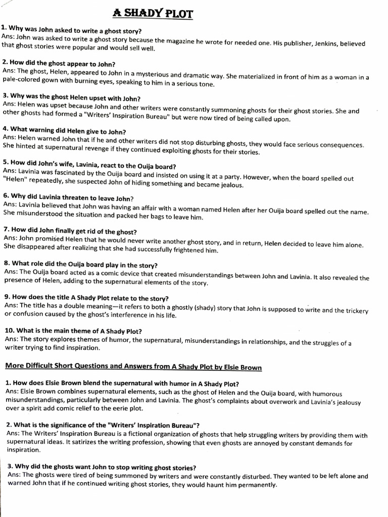 More Difficult Short Questions and Answers fromA Shady Plot by Elsie Brown