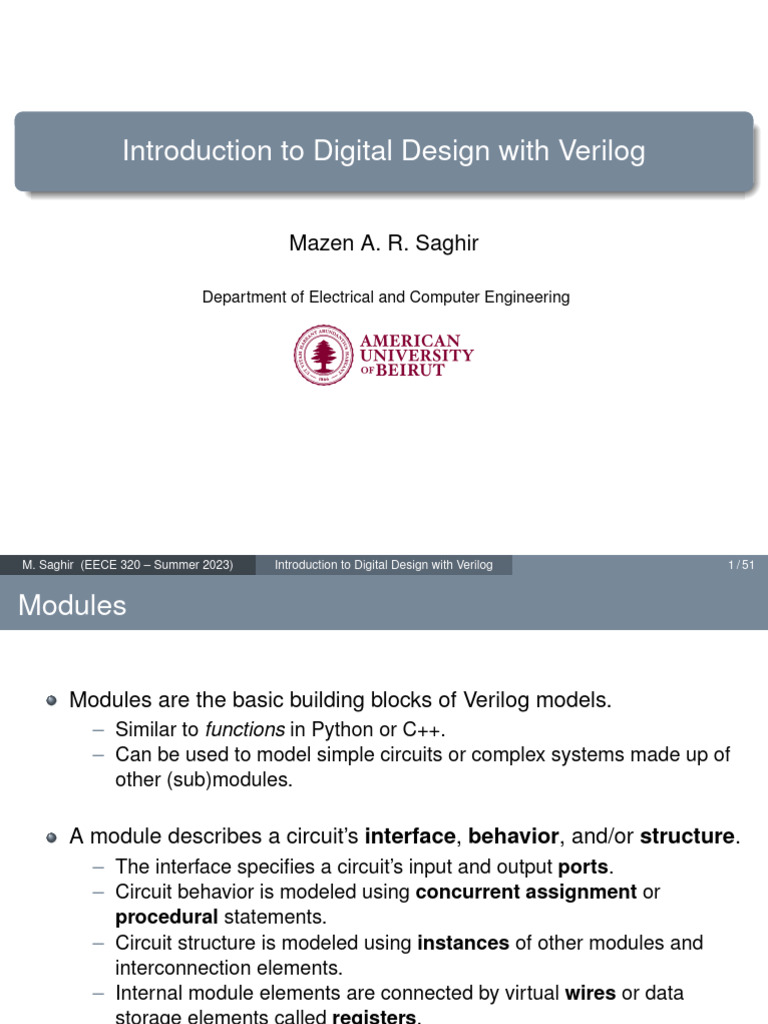 M. Saghir (EECE 320 – Summer 2023) Introduction to Digital Design with Verilog 2 / 51