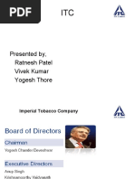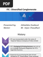 ITC Limited (BSE: 500875) public conglomerate company headquartered in Kolkata, India. Its turnover is $6 billion and a market capitalization of over $30 Billion. The company has its registered office in Kolkata. It started off as the Imperial Tobacco Company, and shares ancestry with Imperial Tobacco of the United Kingdom, but it is now fully independent, and was rechristened to Indian Tobacco Company in 1970 and then to I.T.C. Limited in 1974 The company is currently headed by Yogesh Chander Deveshwar. It employs over 26,000 people at more than 60 locations across India and is listed on Forbes 2000. ITC Limited completed 100 years on 24 August 2010. ITC has a diversified presence in Cigarettes, Hotels, Paperboards & Specialty Papers, Packaging, Agri-Business, Packaged Foods & Confectionery, Information Technology, Branded Apparel, Personal Care, Stationery, Safety Matches and other FMCG products. While ITC is an outstanding market leader in its traditional businesses of Cigarettes, Hotels, Paperboards, Packaging and Agri-Exports, it is rapidly gaining market share even in its nascent businesses of Packaged Foods & Confectionery, Branded Apparel, Personal Care and Stationery. ITC's aspiration to be an exemplar in sustainability practices is manifest in its status as the only company in the world of its size and diversity to be 'carbon positive', 'water positive' and 'solid waste recycling positive.' In addition, ITC's businesses have created sustainable livelihoods for more than 5 million people, a majority of whom represent the poorest in rural India.