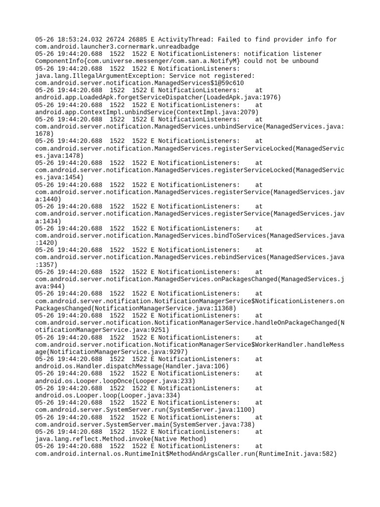 05-26 [Link].688 1522 1522 E NotificationListeners: notification listener