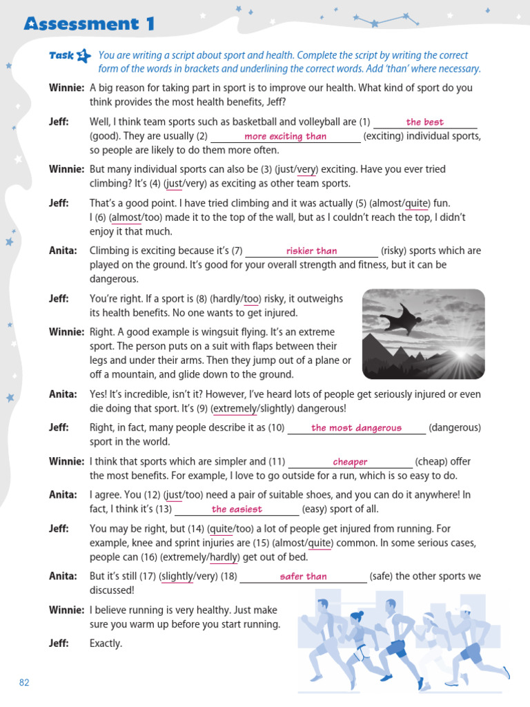 Task 1 You are writing a script about sport and health. Complete the script by writing the correct