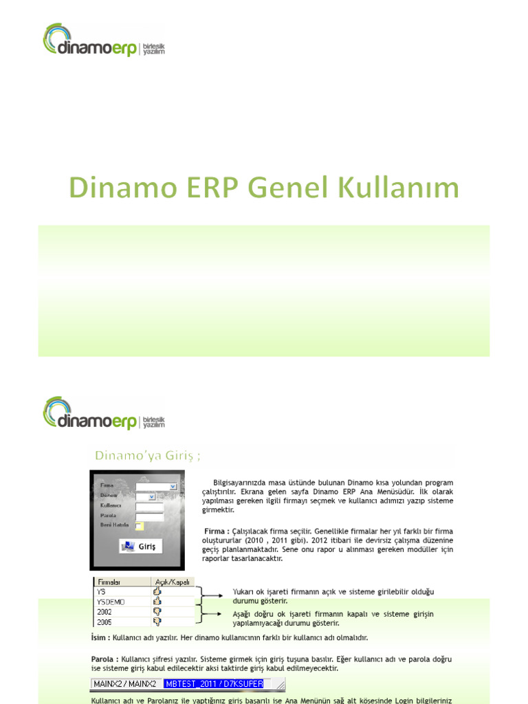 çalıştırılır. Ekrana gelen sayfa Dinamo ERP Ana Menüsüdür. İlk olarak