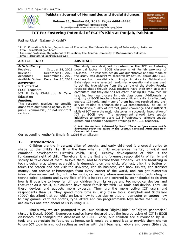 ICT For Fostering Potential of ECCE’s Kids at Punjab, Pakistan