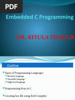 This document covers programming the 8051 microcontroller in C, including variable declaration, simple examples, and the advantages of using C over Assembly. It details various data types used in C for the 8051, their sizes, ranges, and usage, along with example programs demonstrating port programming and delay generation. Additionally, it discusses the impact of compiler differences on hex file sizes and provides insights into bit-addressable I/O programming.