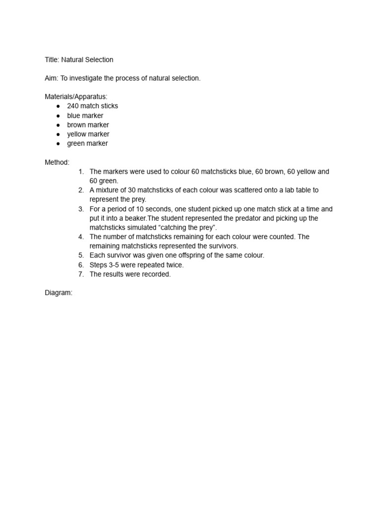 3. For a period of 10 seconds, one student picked up one match stick at a time and