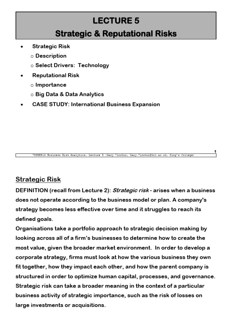 7SSMM814 Business Risk Analytics, Lecture 5 (Gary Vinokur, Gary.Vinokur@kcl.ac.uk, King’s College)