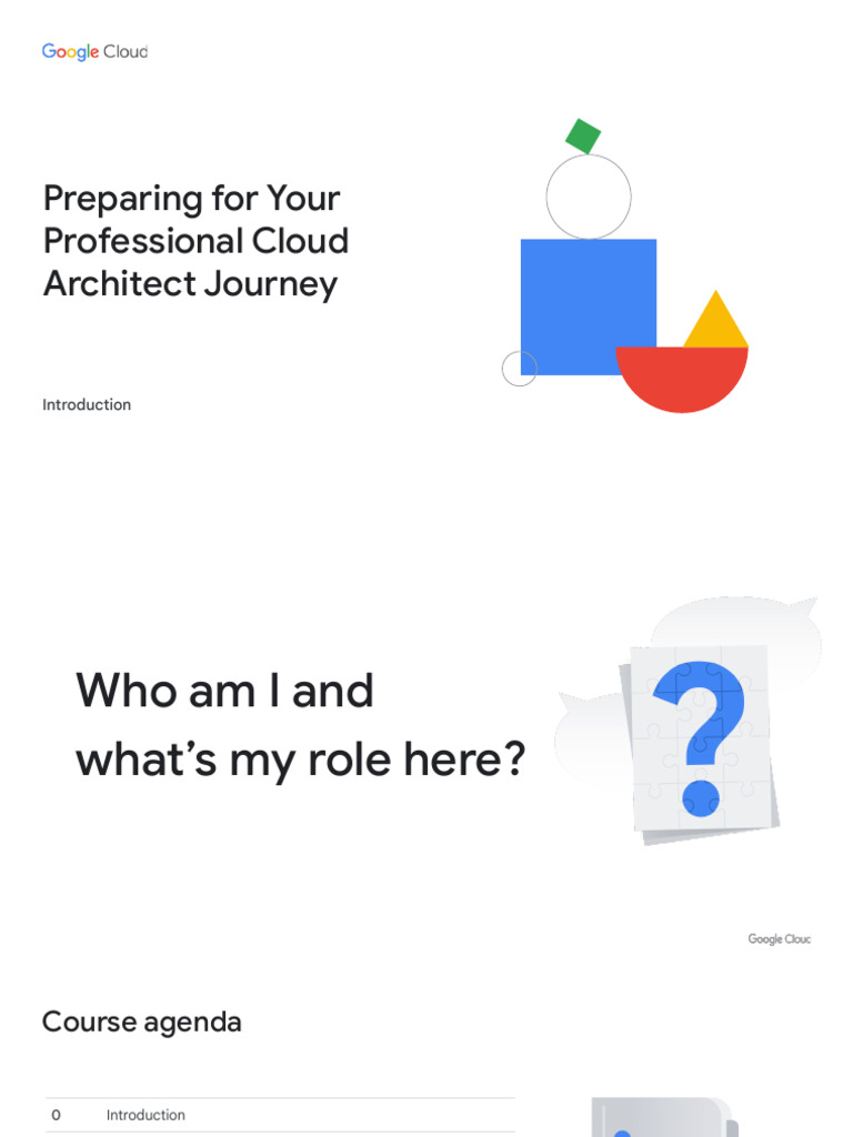 - Technically, no hard prerequisites (such as other GCP certs / courses / architect & cloud experience), but…