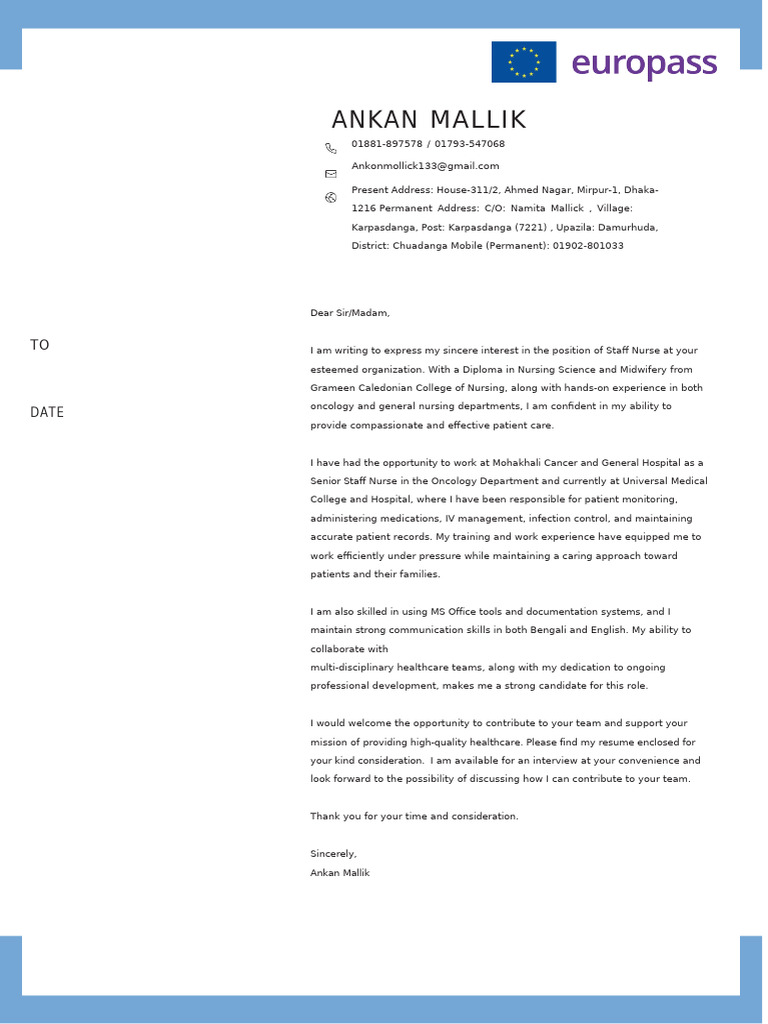 TO I am writing to express my sincere interest in the position of Staff Nurse at your