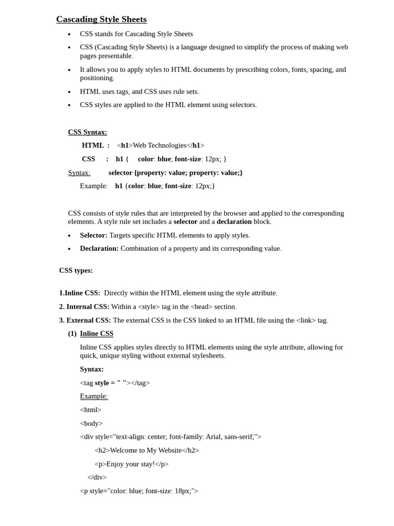 1. <h1> <h1>Hello</h1> h1 { font-size: 32px; color: blue; }