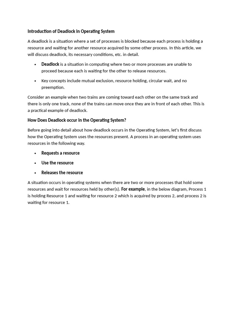 Before going into detail about how deadlock occurs in the Operating System, let's first discuss