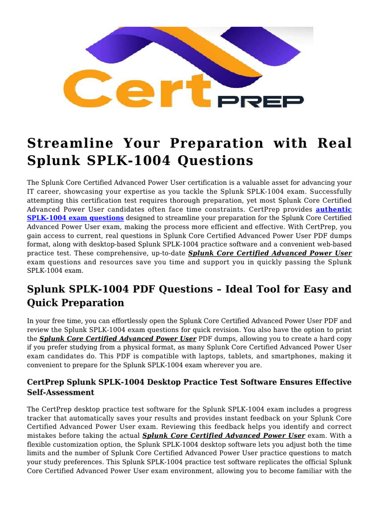 practice test. These comprehensive, up-to-date Splunk Core Certified Advanced Power User