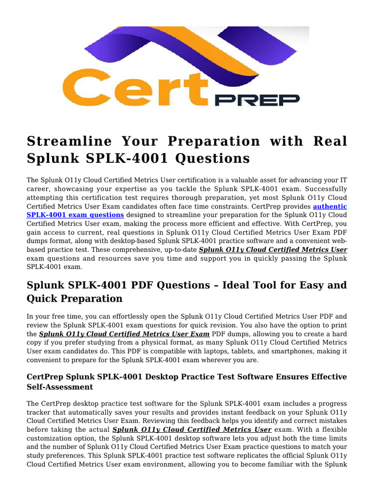 O11y Cloud Certified Metrics User Exam format and ease test-day nerves. The Splunk SPLK-4001