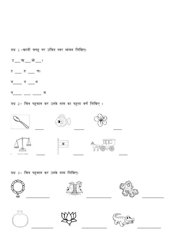 प्रश्न 1 -खाली जगह पर उचित स्वर व्यंजन चलचखए।